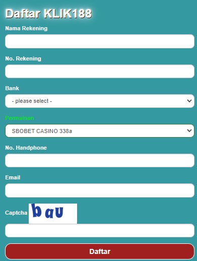 Cara Daftar Akun di KLIK188 Lewat Form Pendaftaran – Silahkan akses wesbite resmi KLIK188 atau klik form pendaftaran dibawah ini dan lakukanlah pendaftaran dengan mengisi setiap kolom secara lengkap dan valid.